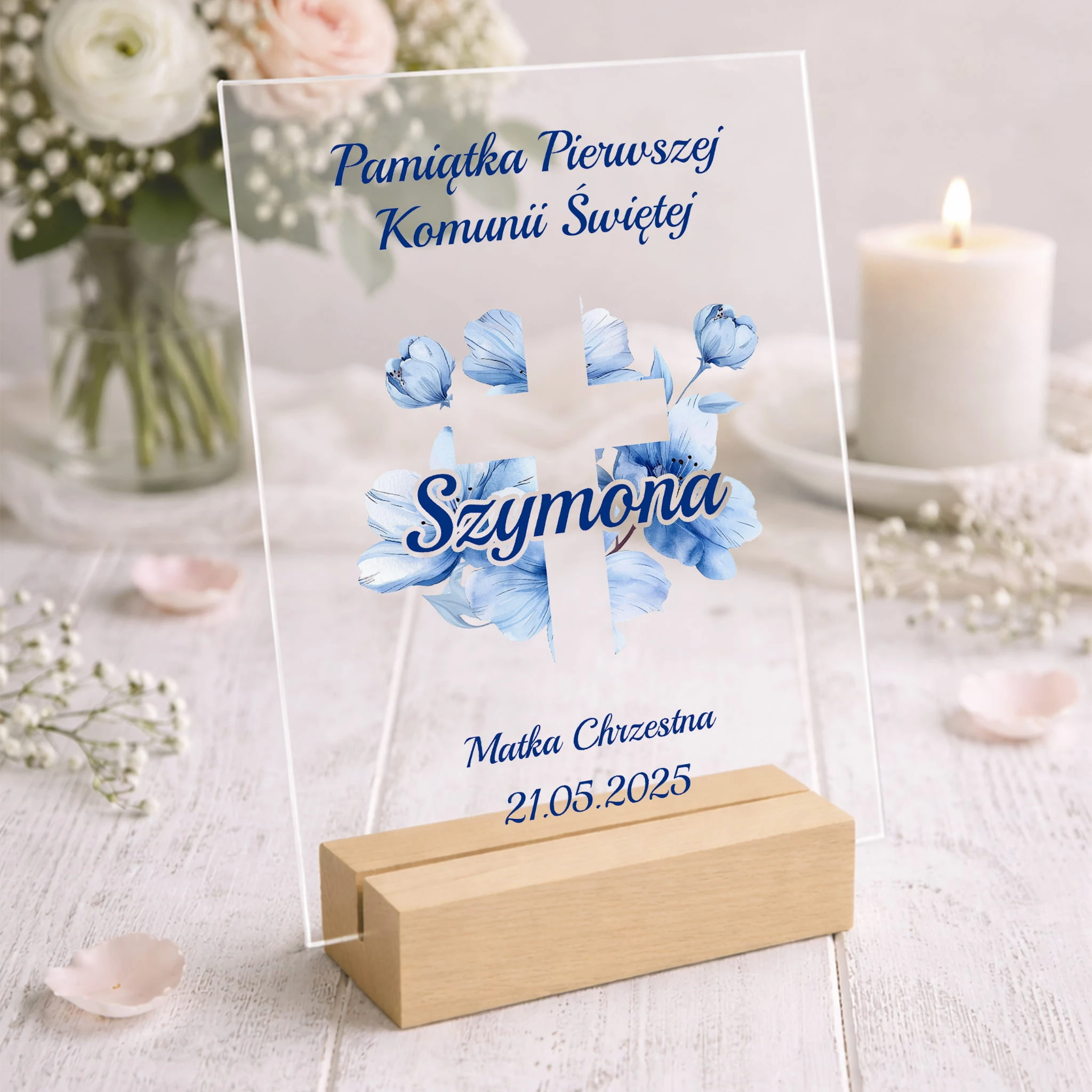 Szukasz prezentu komunijnego, który nie będzie przypadkowy ani banalny? Statuetka wykonana z przezroczystego akrylu to propozycja łącząca estetykę z symbolicznym znaczeniem - odpowiednia zarówno dla dziecka, jak i jako elegancki gest od chrzestnych czy bliskiej rodziny.