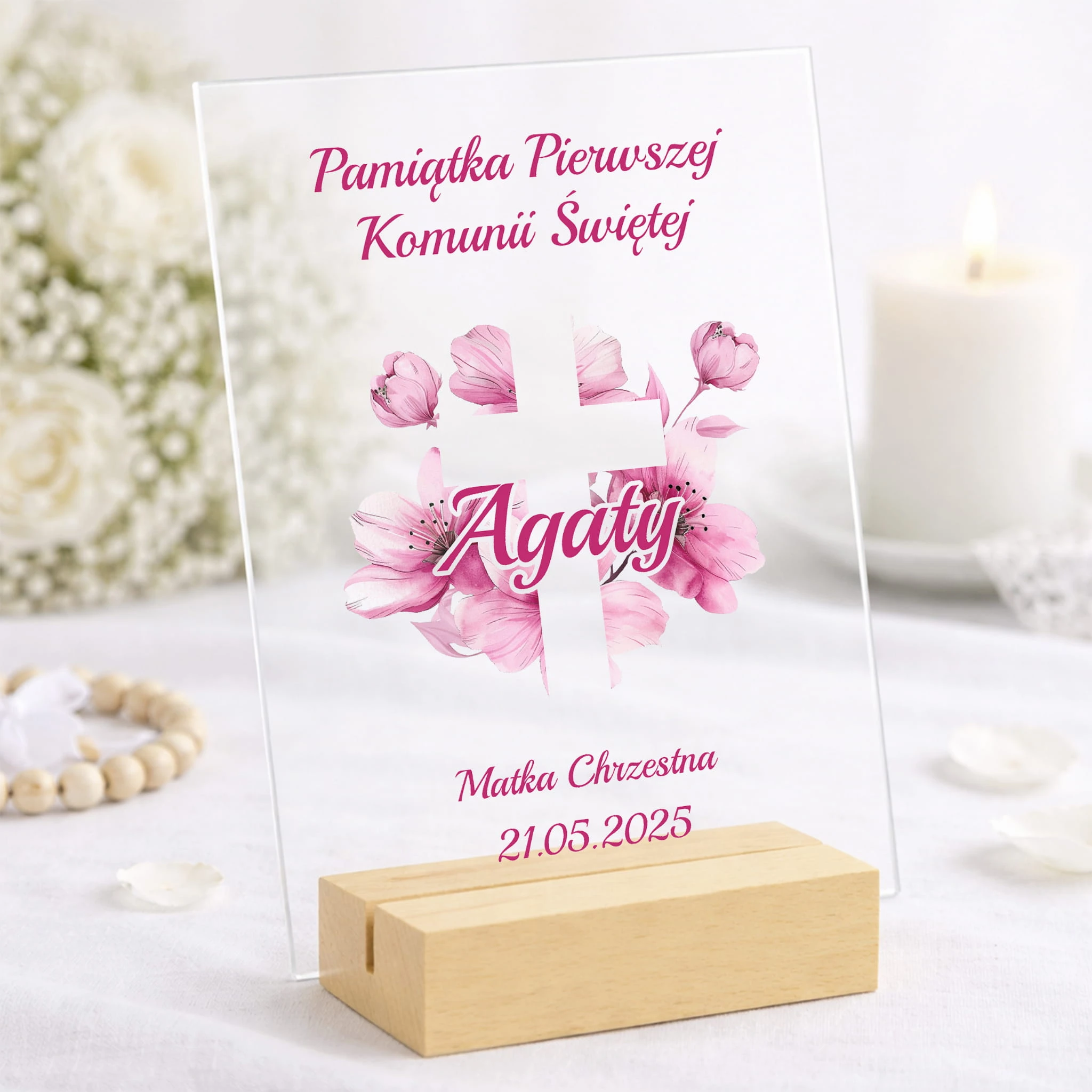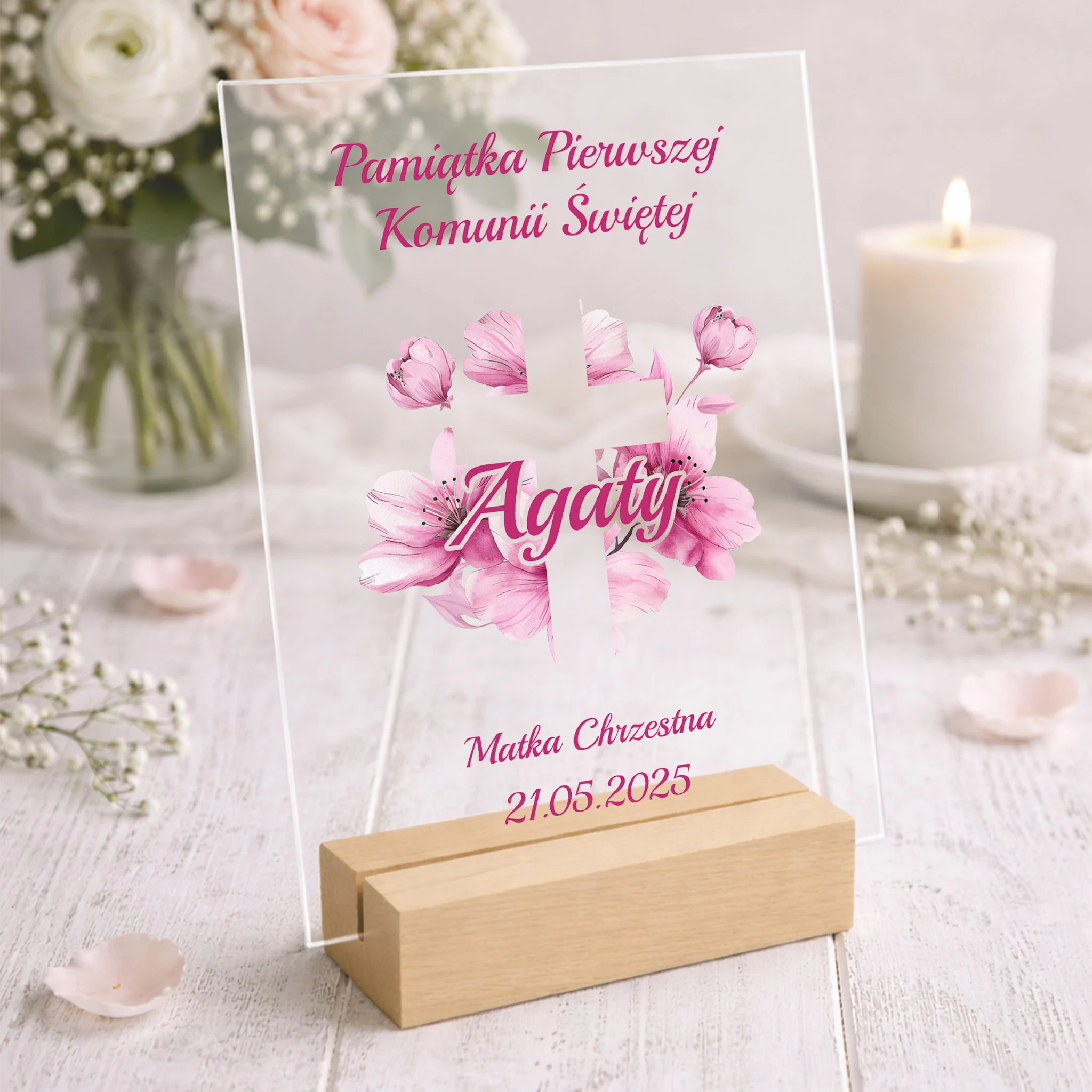 Szukasz prezentu komunijnego, który nie będzie przypadkowy ani banalny? Statuetka wykonana z przezroczystego akrylu to propozycja łącząca estetykę z symbolicznym znaczeniem - odpowiednia zarówno dla dziecka, jak i jako elegancki gest od chrzestnych czy bliskiej rodziny.