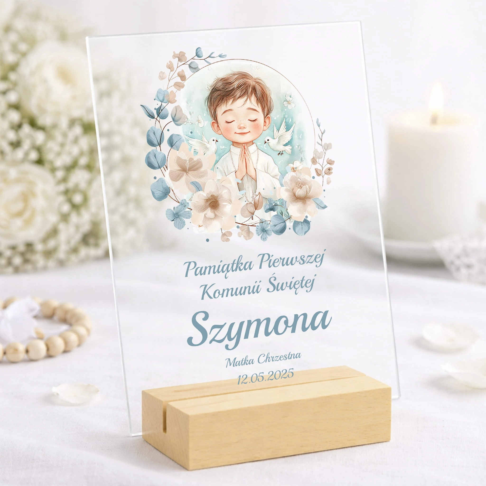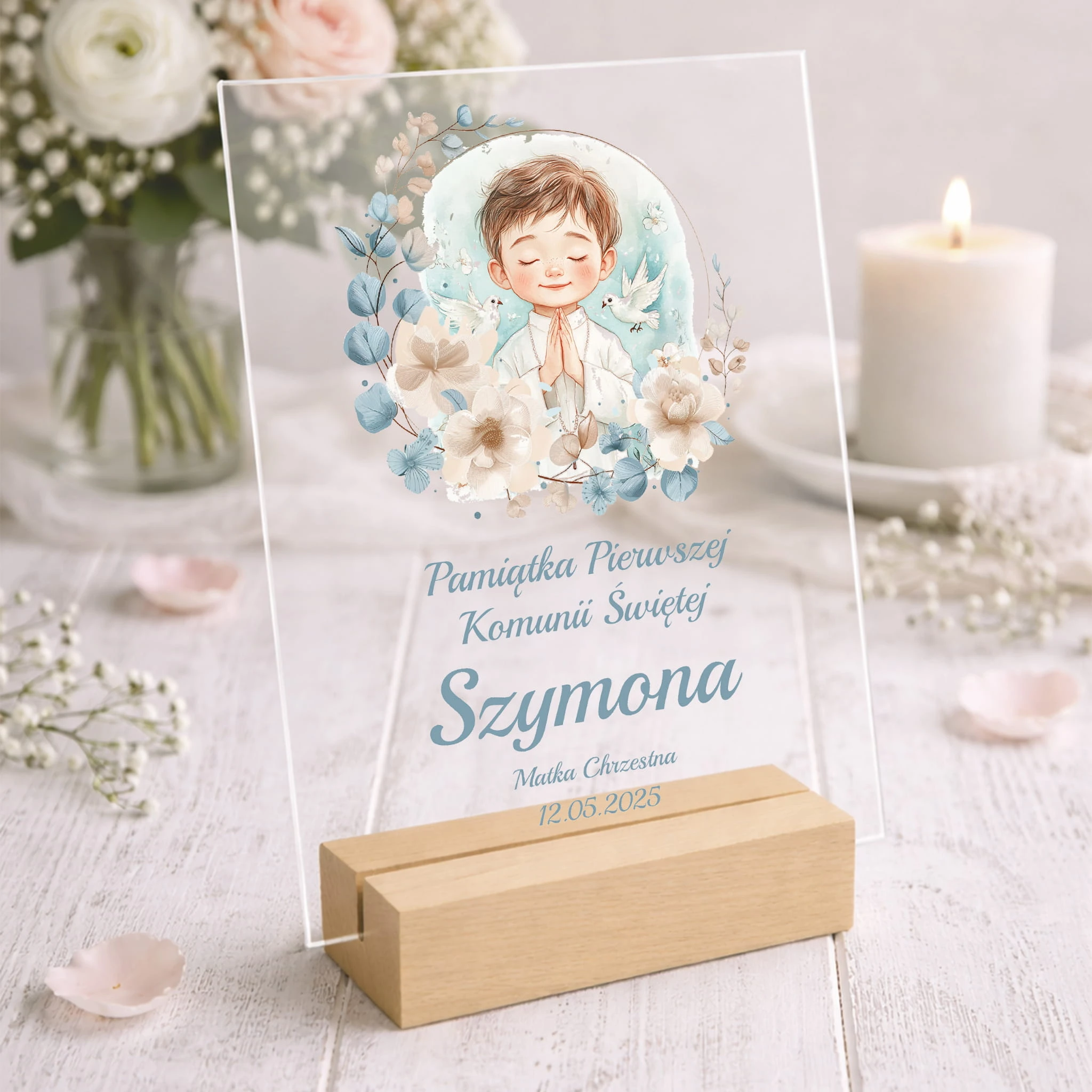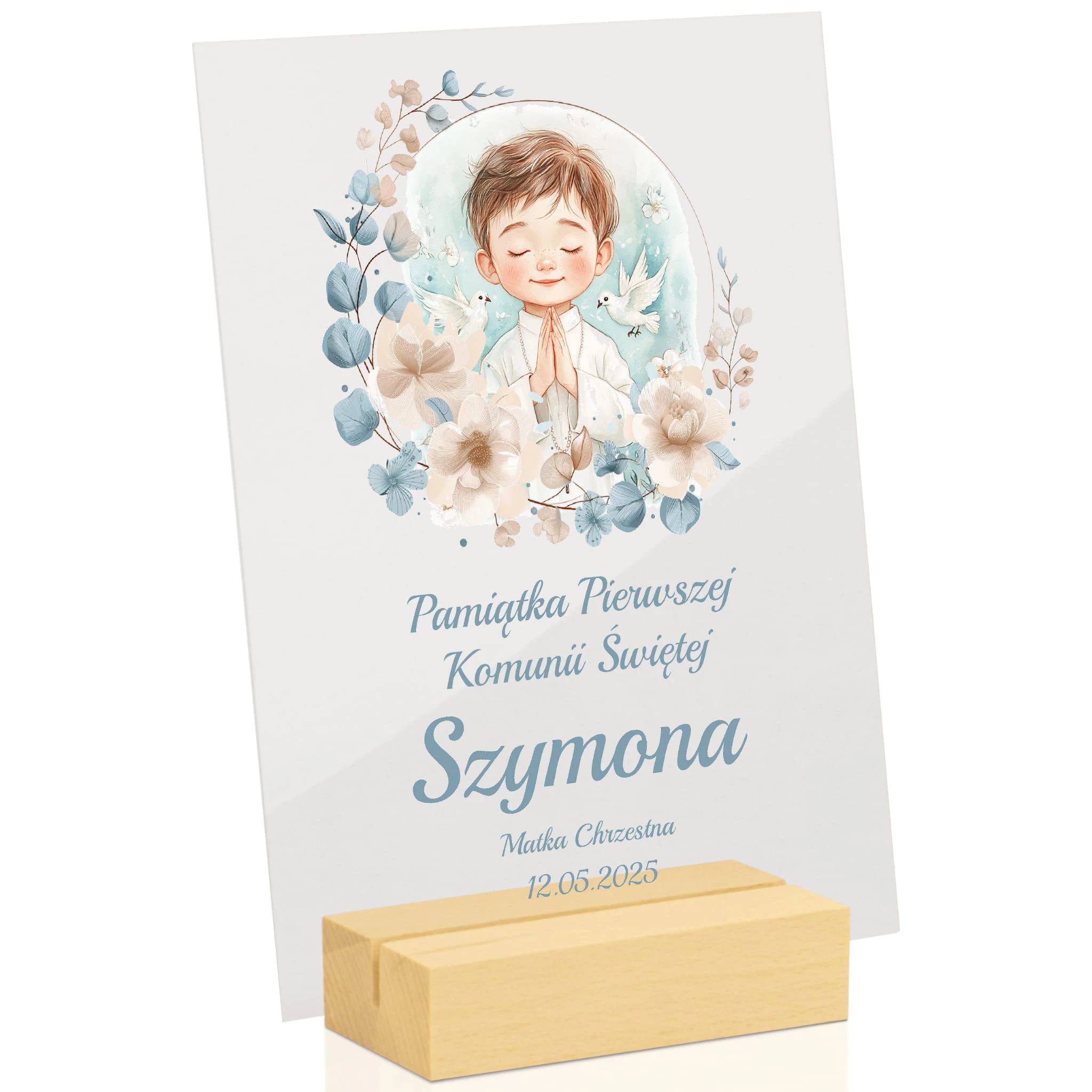 Szukasz prezentu komunijnego, który nie będzie przypadkowy ani banalny? Statuetka wykonana z przezroczystego akrylu to propozycja łącząca estetykę z symbolicznym znaczeniem - odpowiednia zarówno dla dziecka, jak i jako elegancki gest od chrzestnych czy bliskiej rodziny.