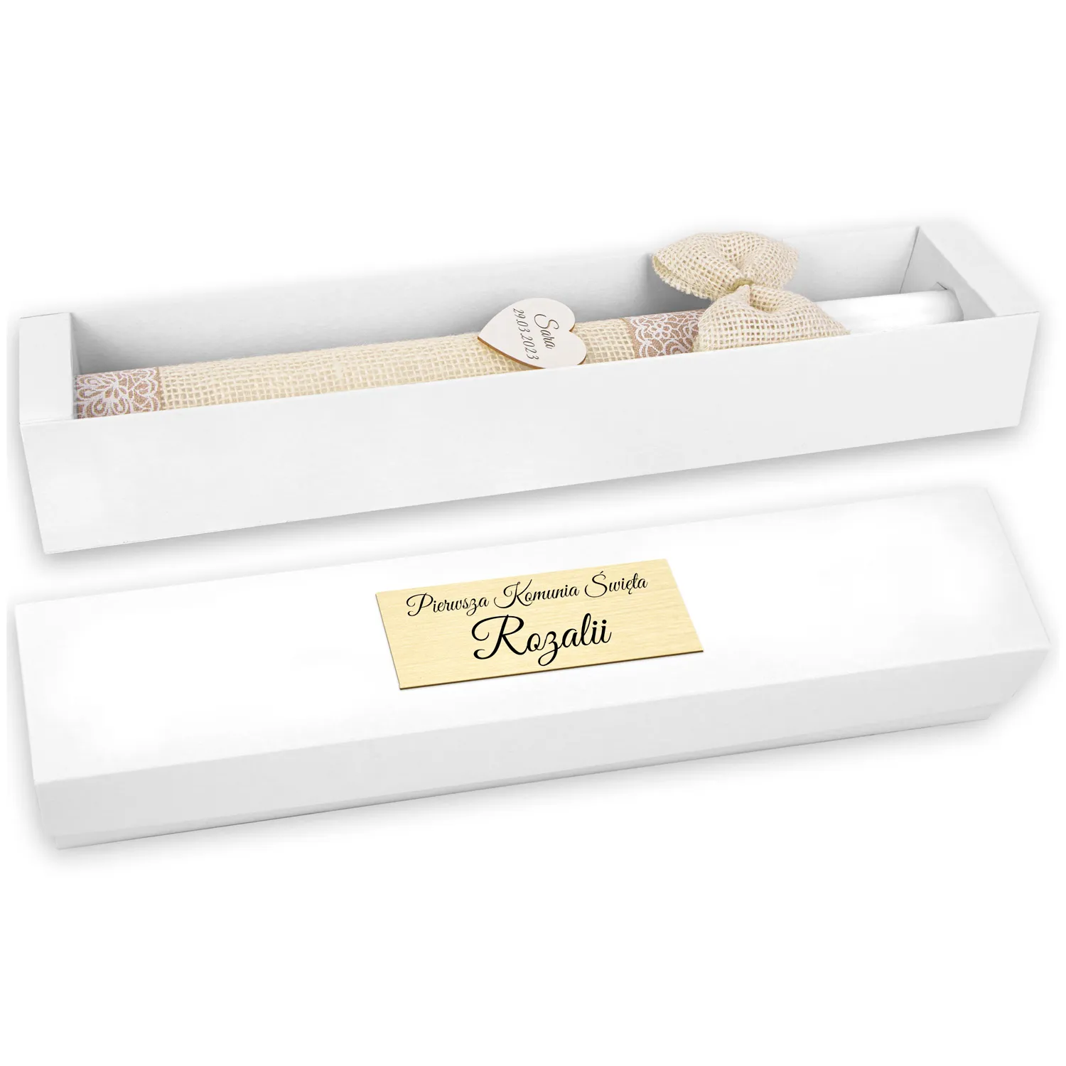 Pudełko na świecę karton kraft - piękna pamiątka i idealny prezent dla chrześniaka. Świeca przechowywana w pudełku jest dobrze chroniona - będzie mogła służyć w niezmiennej formie podczas kolejnych uroczystości.