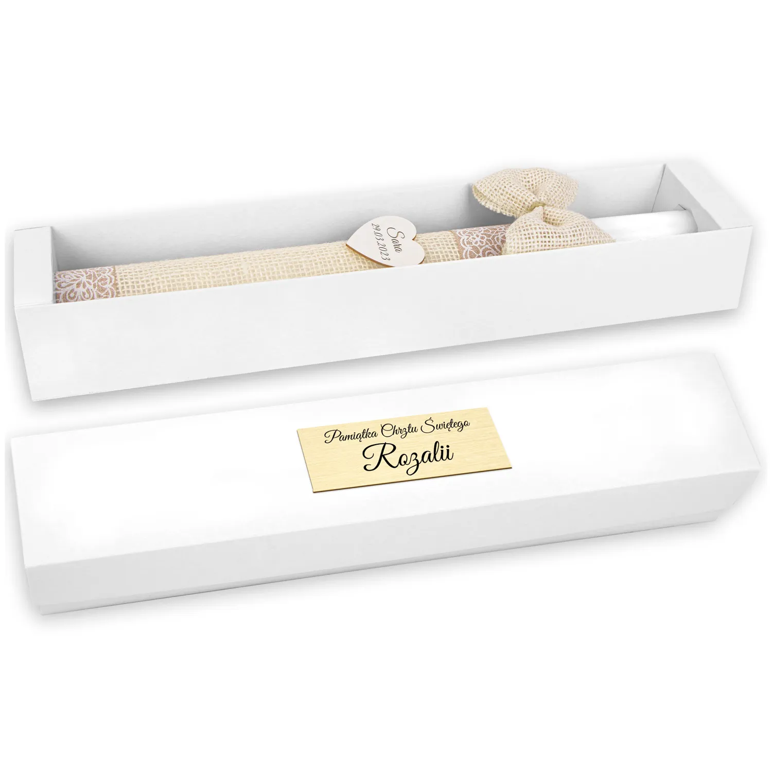 Pudełko na świecę karton kraft - piękna pamiątka i idealny prezent dla chrześniaka. Świeca przechowywana w pudełku jest dobrze chroniona - będzie mogła służyć w niezmiennej formie podczas kolejnych uroczystości.