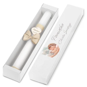 Pudełko karton kraft - piękna pamiątka i idealny prezent dla chrześniaka. Świeca przechowywana w pudełku jest dobrze chroniona - będzie mogła służyć w niezmiennej formie podczas kolejnych uroczystości.