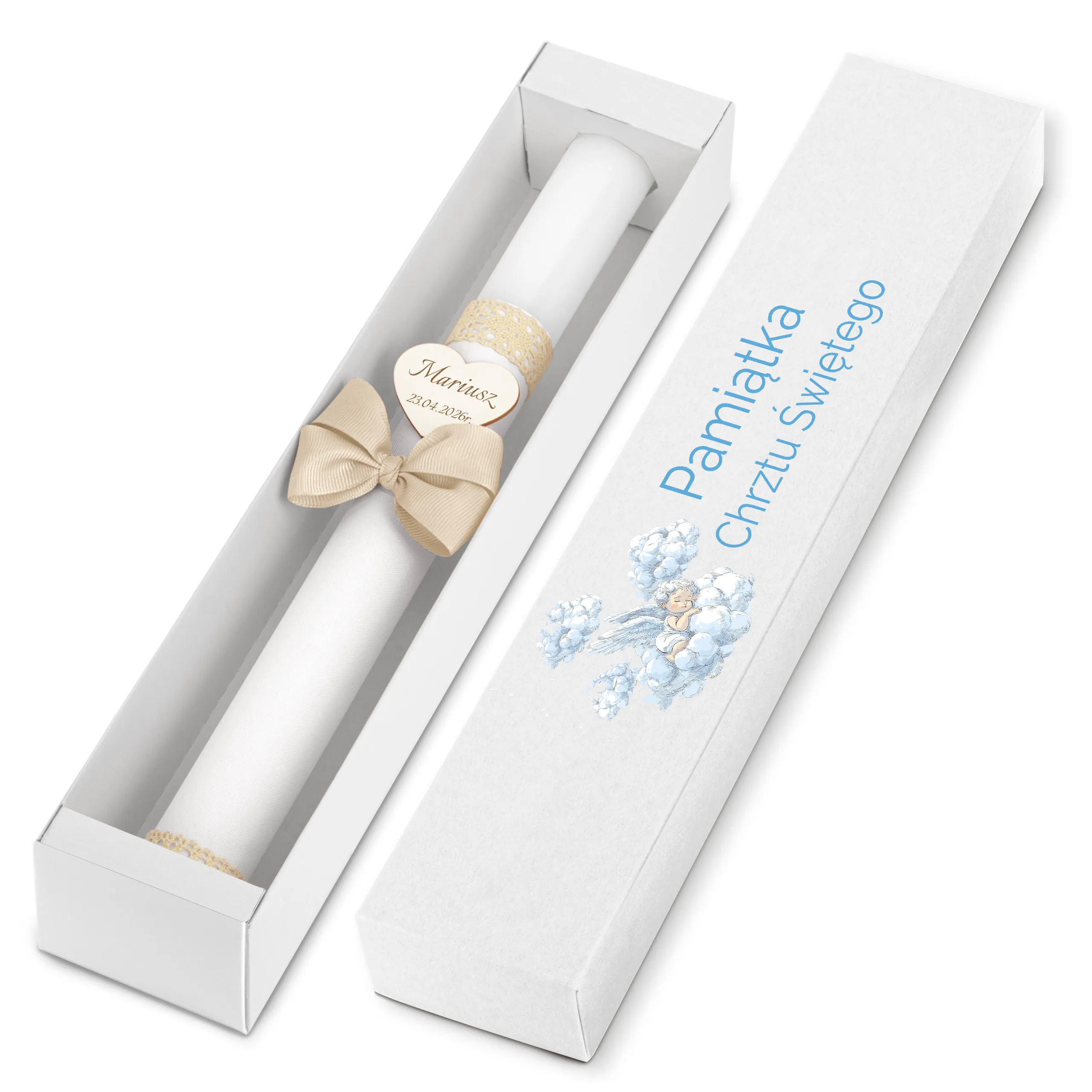 Pudełko karton kraft - piękna pamiątka i idealny prezent dla chrześniaka. Świeca przechowywana w pudełku jest dobrze chroniona - będzie mogła służyć w niezmiennej formie podczas kolejnych uroczystości.