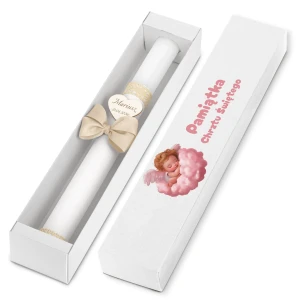 Pudełko karton kraft - piękna pamiątka i idealny prezent dla chrześniaka. Świeca przechowywana w pudełku jest dobrze chroniona - będzie mogła służyć w niezmiennej formie podczas kolejnych uroczystości.