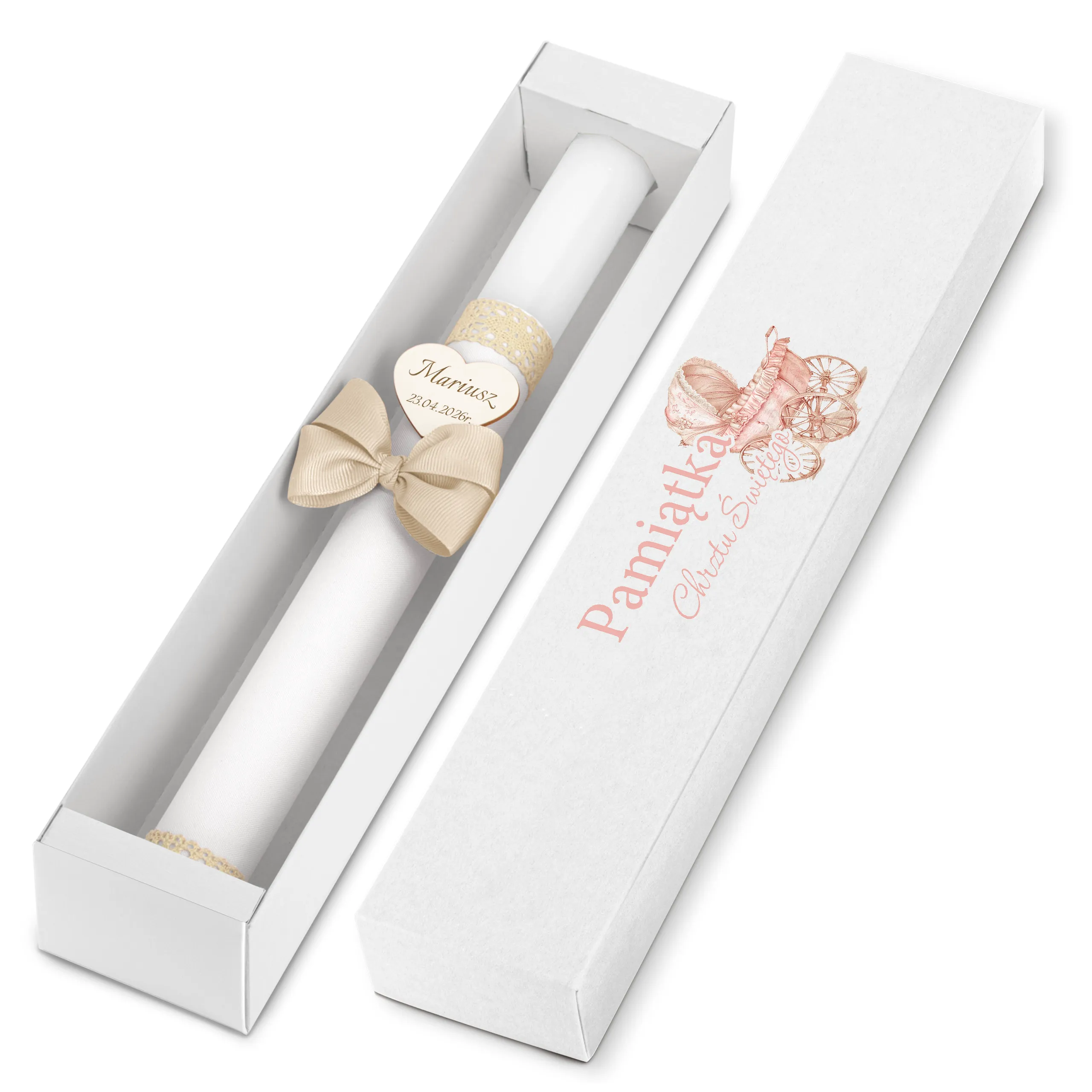 Pudełko karton kraft - piękna pamiątka i idealny prezent dla chrześniaka. Świeca przechowywana w pudełku jest dobrze chroniona - będzie mogła służyć w niezmiennej formie podczas kolejnych uroczystości.