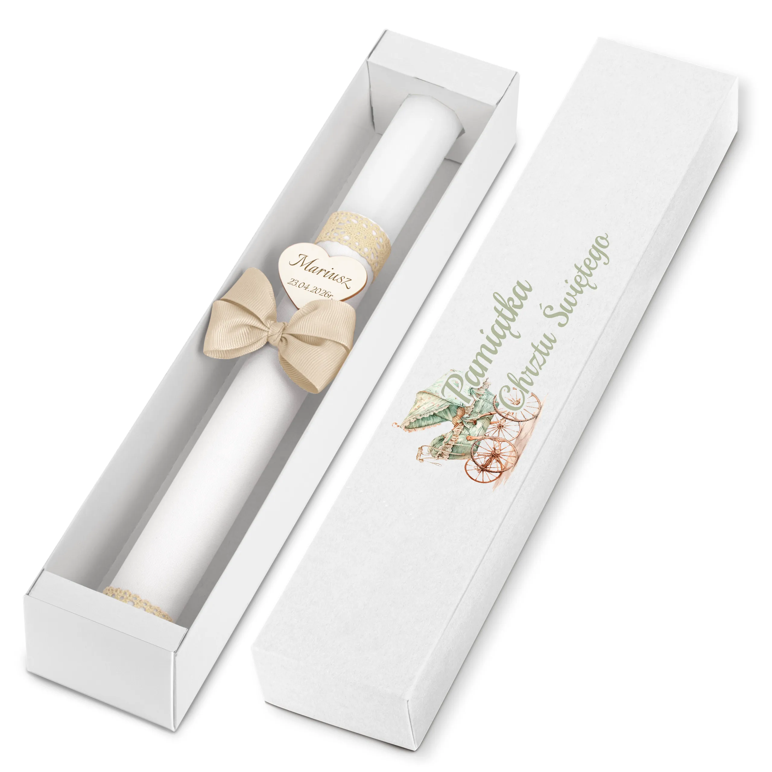 Pudełko karton kraft - piękna pamiątka i idealny prezent dla chrześniaka. Świeca przechowywana w pudełku jest dobrze chroniona - będzie mogła służyć w niezmiennej formie podczas kolejnych uroczystości.