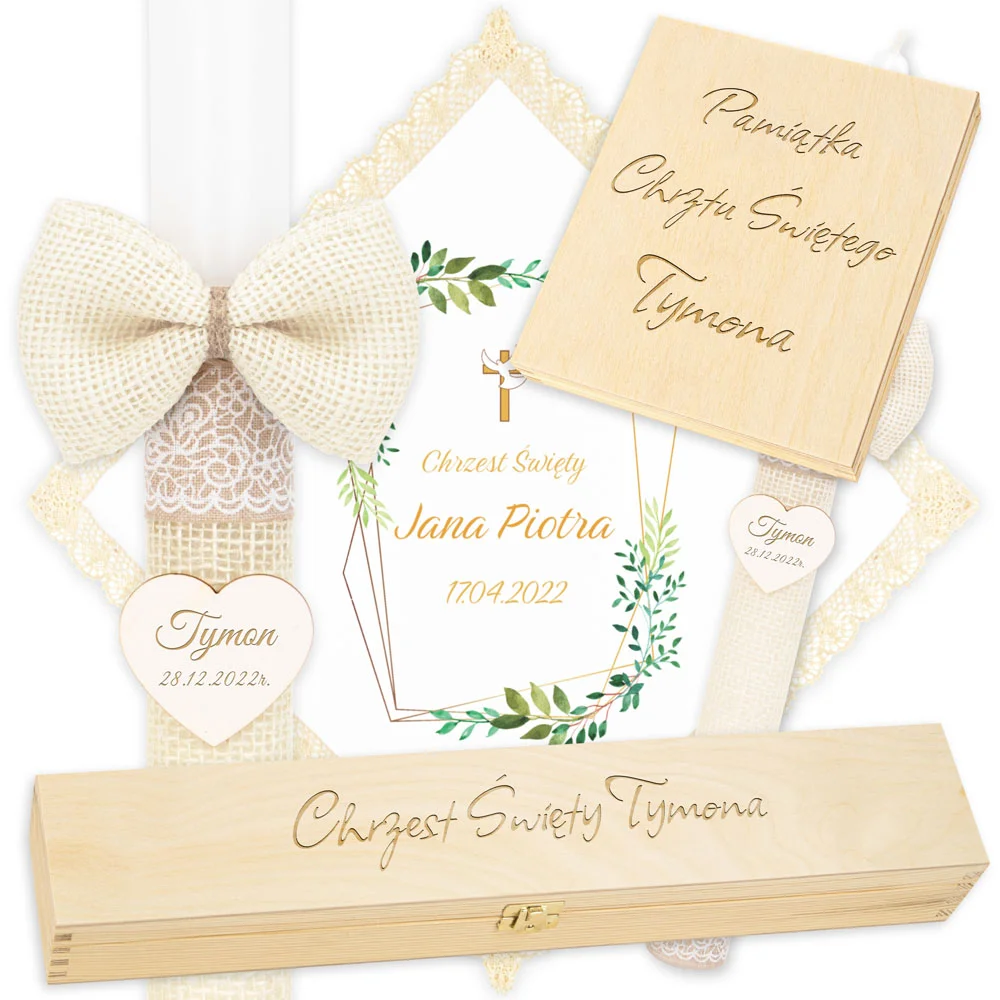 ✅ świeca na chrzest wraz z personalizacją (imieniem dziecka i datą chrztu),