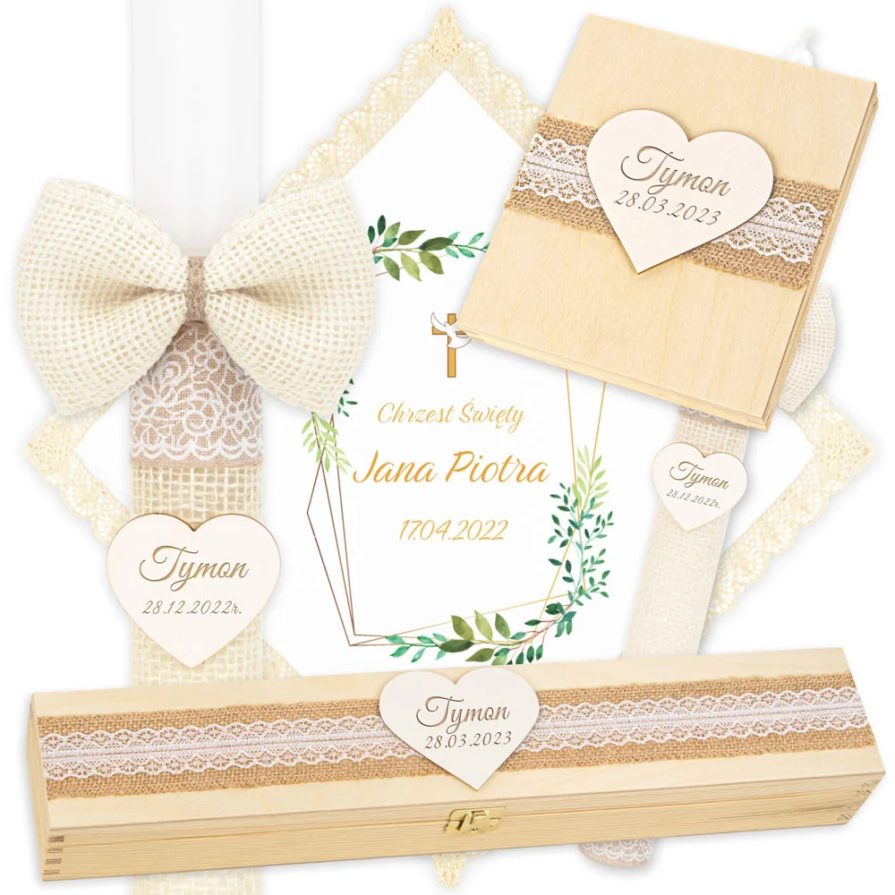 Świeca, Szatka i 2 Pudełka do Chrztu C4S15P7SZ4
