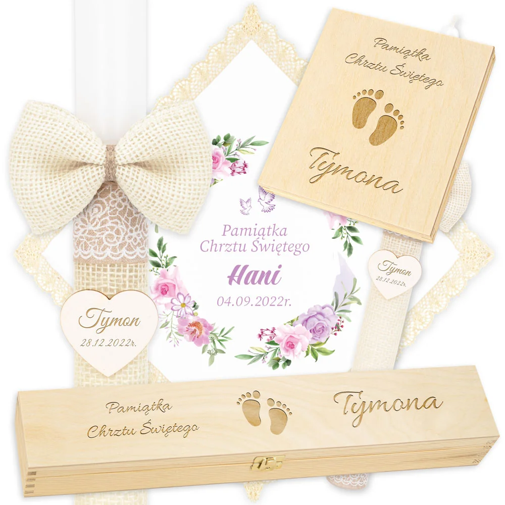 ✅ świeca na chrzest wraz z personalizacją (imieniem dziecka i datą chrztu),