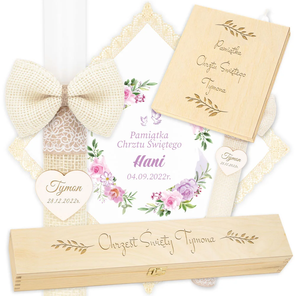 ✅ świeca na chrzest wraz z personalizacją (imieniem dziecka i datą chrztu),