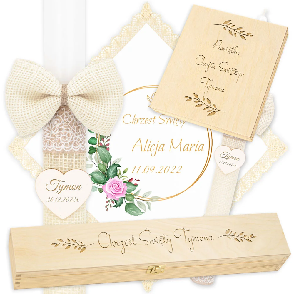 ✅ świeca na chrzest wraz z personalizacją (imieniem dziecka i datą chrztu),