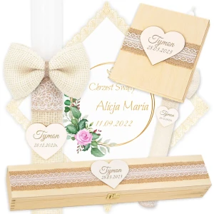 Świeca, Szatka i 2 Pudełka do Chrztu C4S18P7SZ4