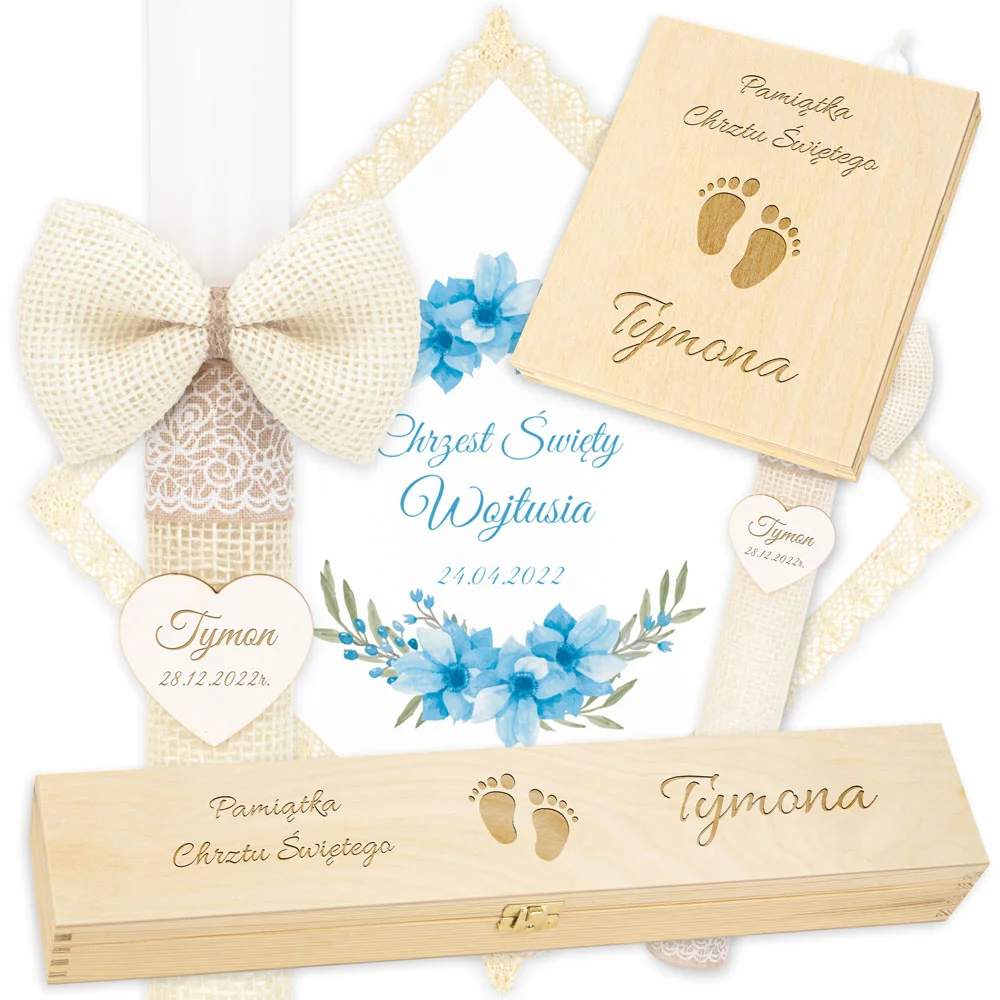 Świeca, Szatka i 2 Pudełka do Chrztu C4S1P11/11SZ3