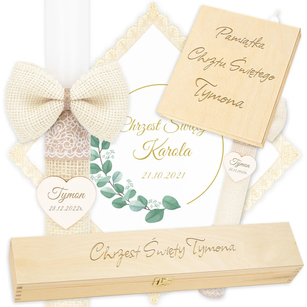 Świeca, Szatka i 2 Pudełka do Chrztu C4S4P11/10SZ2