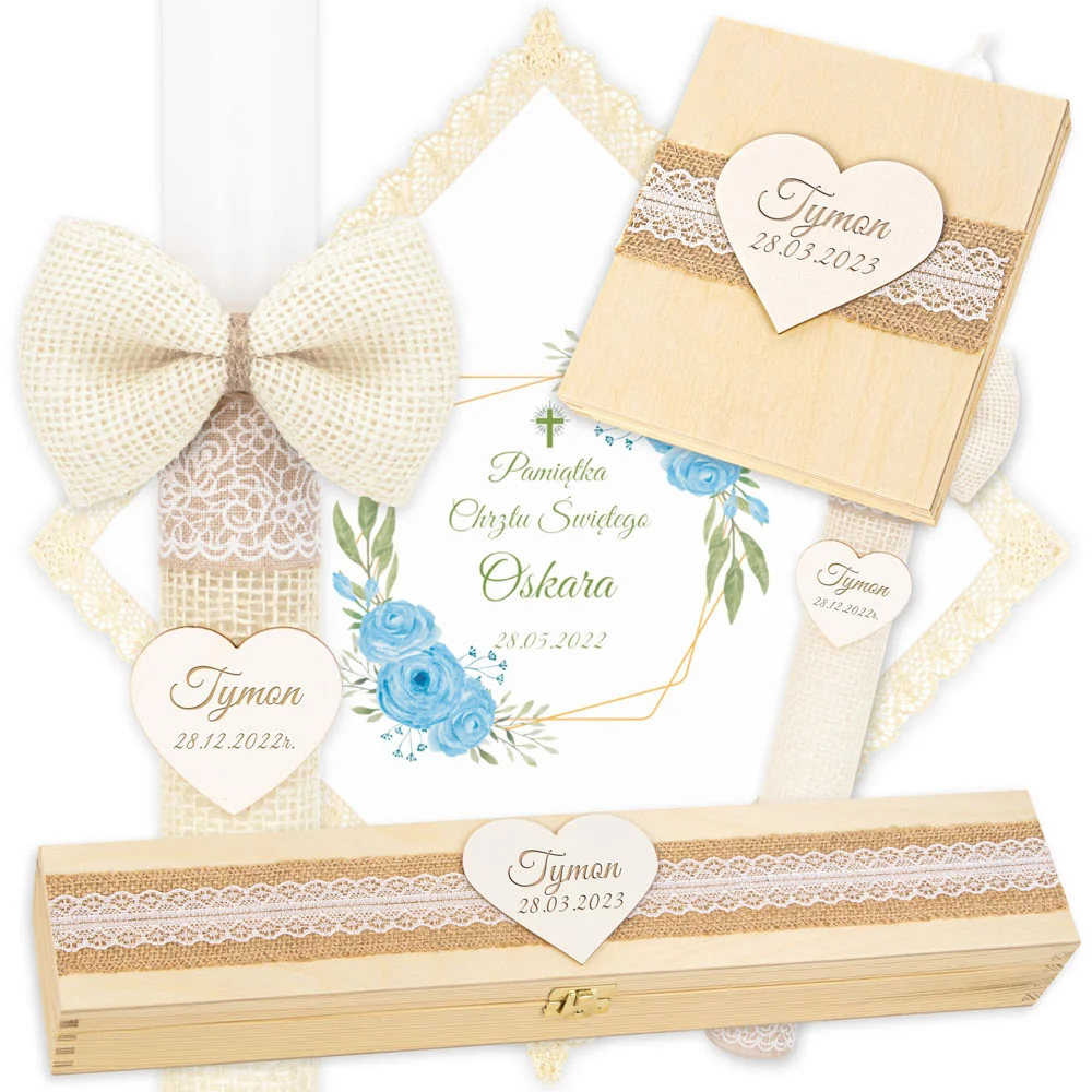 Świeca, Szatka i 2 Pudełka do Chrztu C4S8P7SZ4