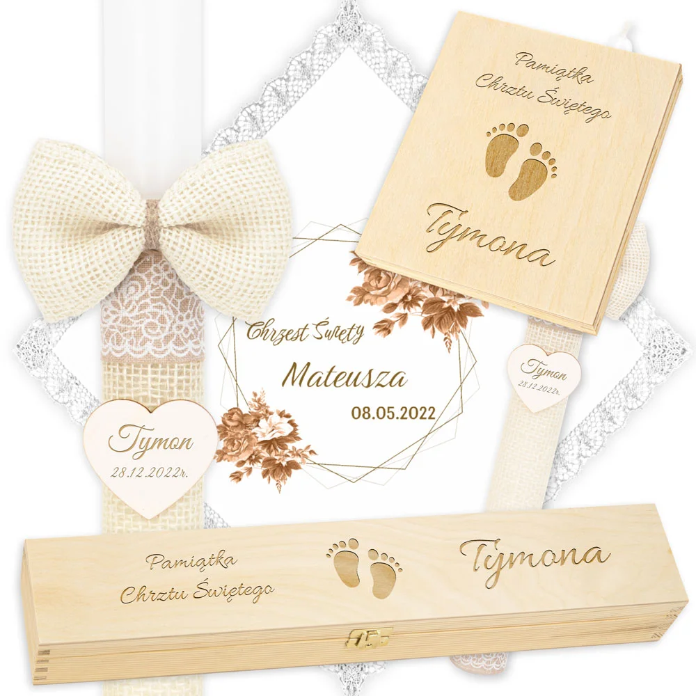 Świeca, Szatka i 2 Pudełka do Chrztu C4SB10P11/11SZ3
