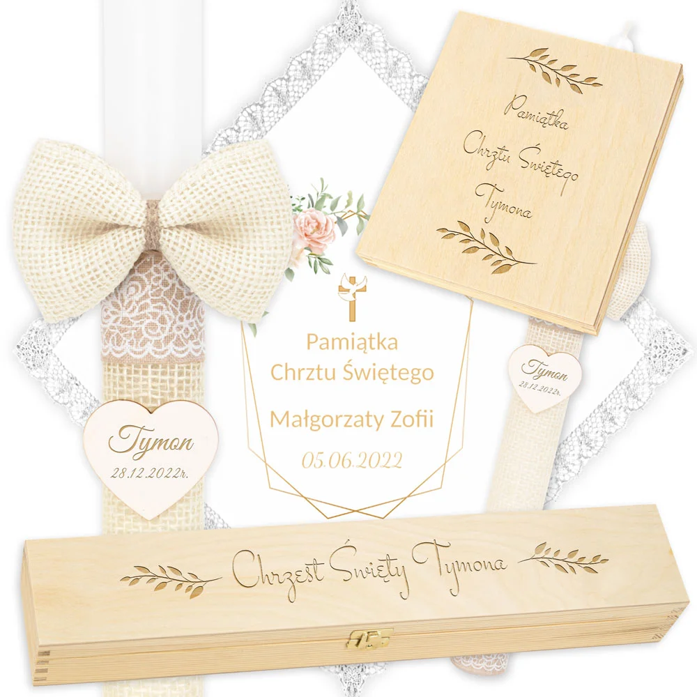 Świeca, Szatka i 2 Pudełka do Chrztu C4SB6P11/9SZ1