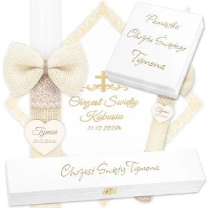 Świeca, Szatka i 2 Pudełka do Chrztu C4SH1P13/10SZ2