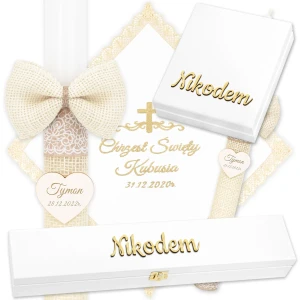 Świeca, Szatka i 2 Pudełka do Chrztu C4SH1P9SZ5