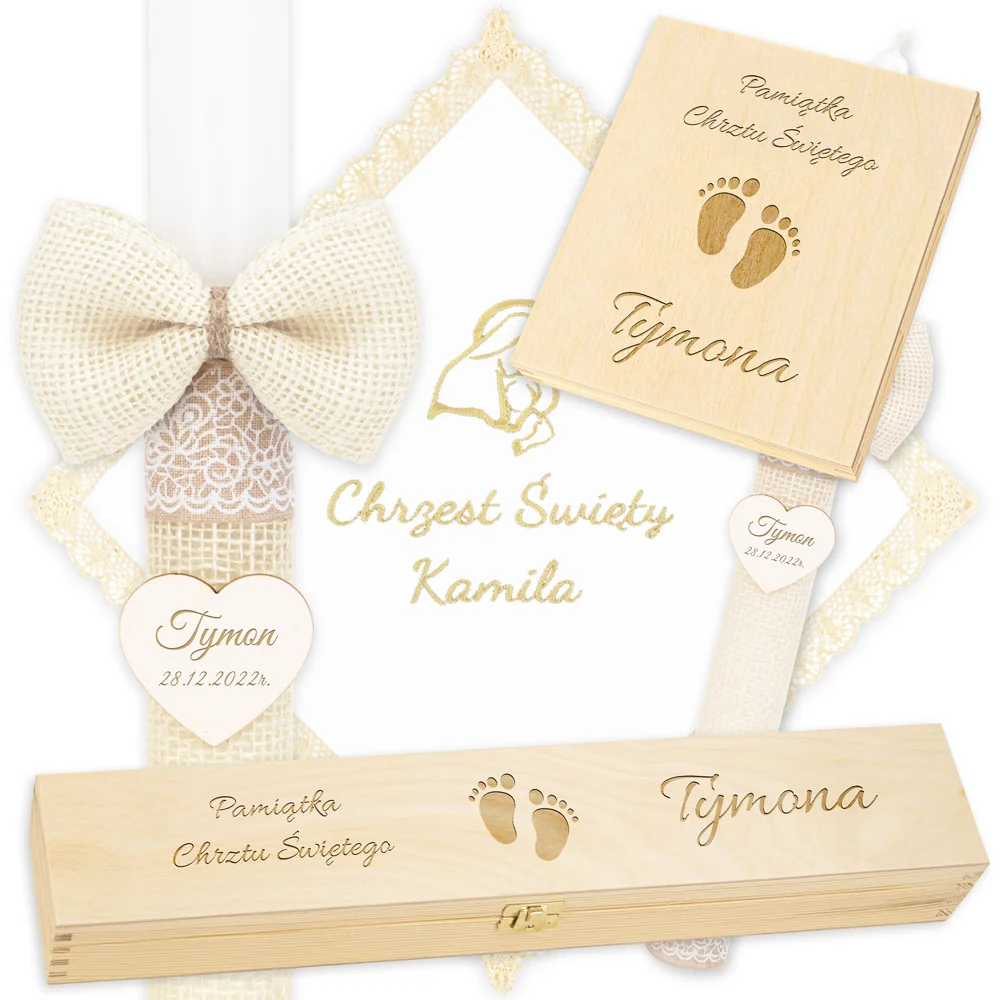 Świeca, Szatka i 2 Pudełka do Chrztu C4SH2P11/11SZ3