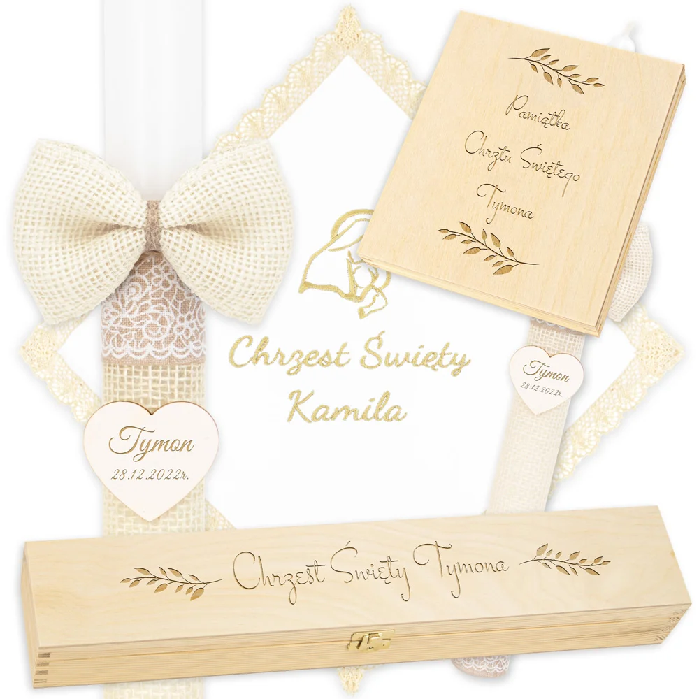 Świeca, Szatka i 2 Pudełka do Chrztu C4SH2P11/9SZ1