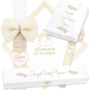 Świeca, Szatka i 2 Pudełka do Chrztu C4SH3P13/9SZ1