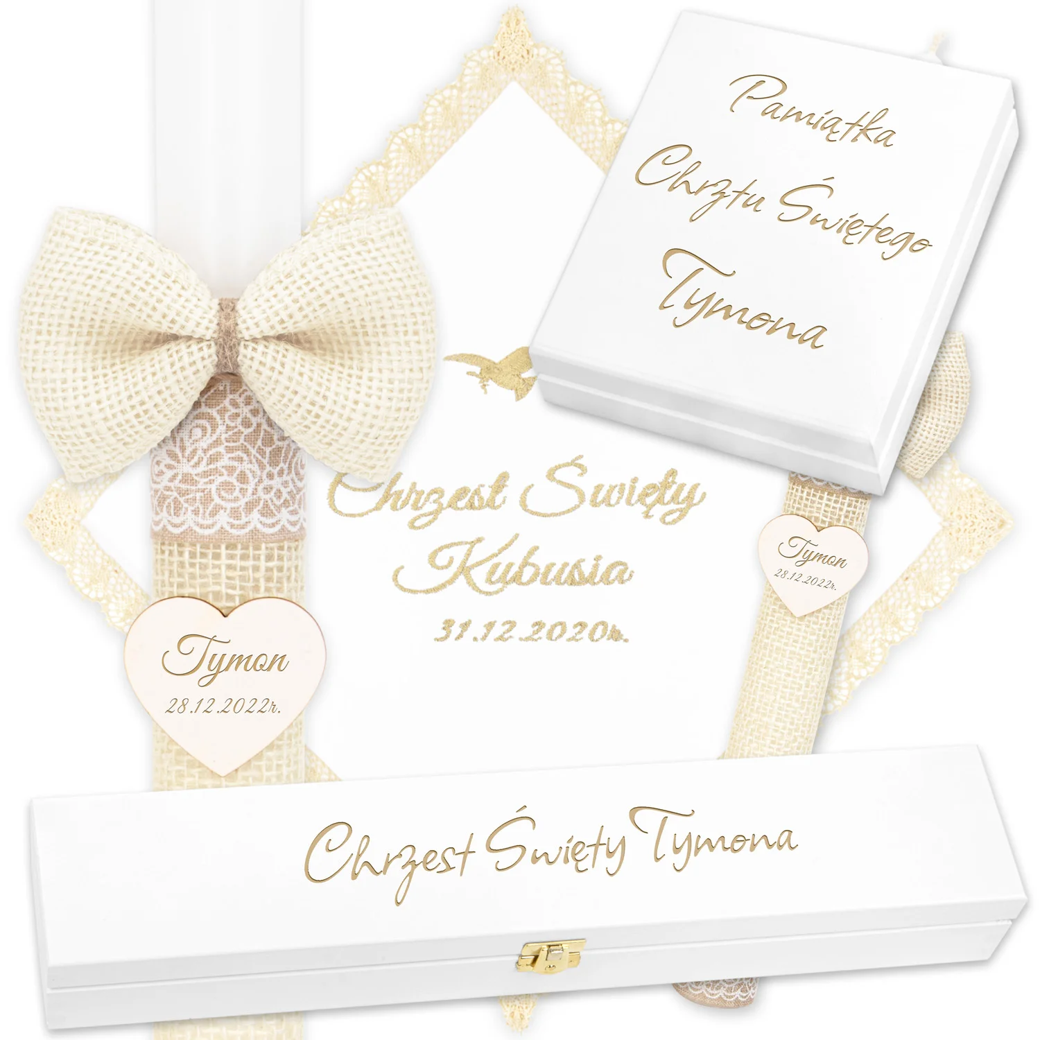 Świeca, Szatka i 2 Pudełka do Chrztu C4SH4P13/10SZ1