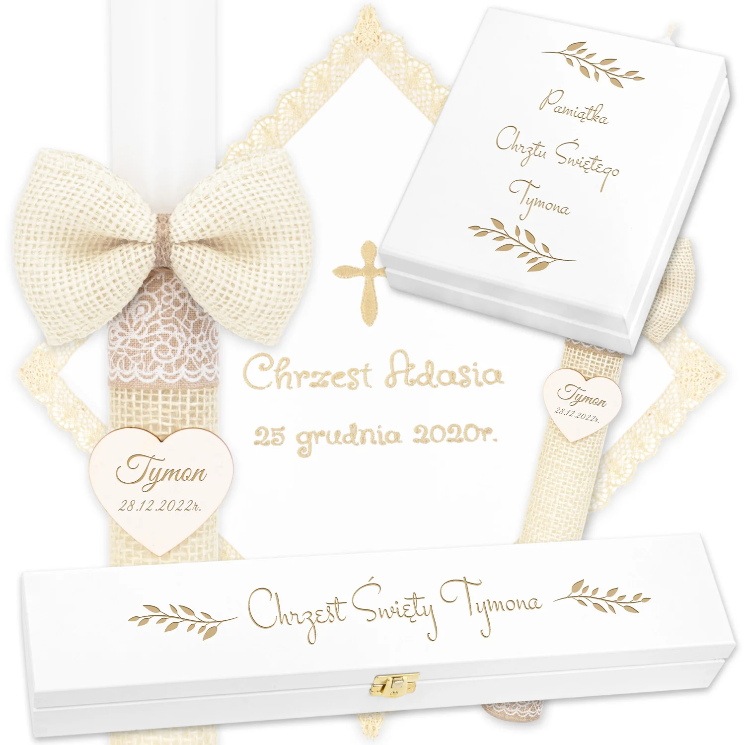 Świeca, Szatka i 2 Pudełka do Chrztu C4SH6P13/9SZ1