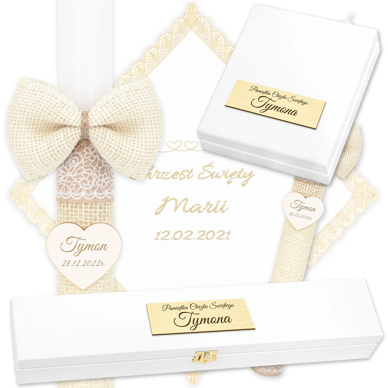 Świeca, Szatka i 2 Pudełka do Chrztu C4SH7P8SZ8