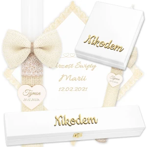 Świeca, Szatka i 2 Pudełka do Chrztu C4SH7P9SZ5