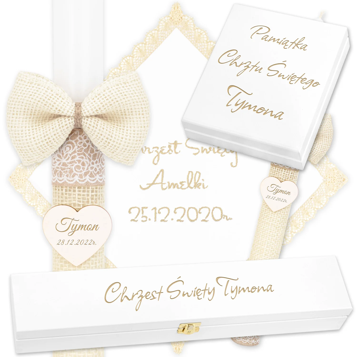 Świeca, Szatka i 2 Pudełka do Chrztu C4SH8P13/10SZ1