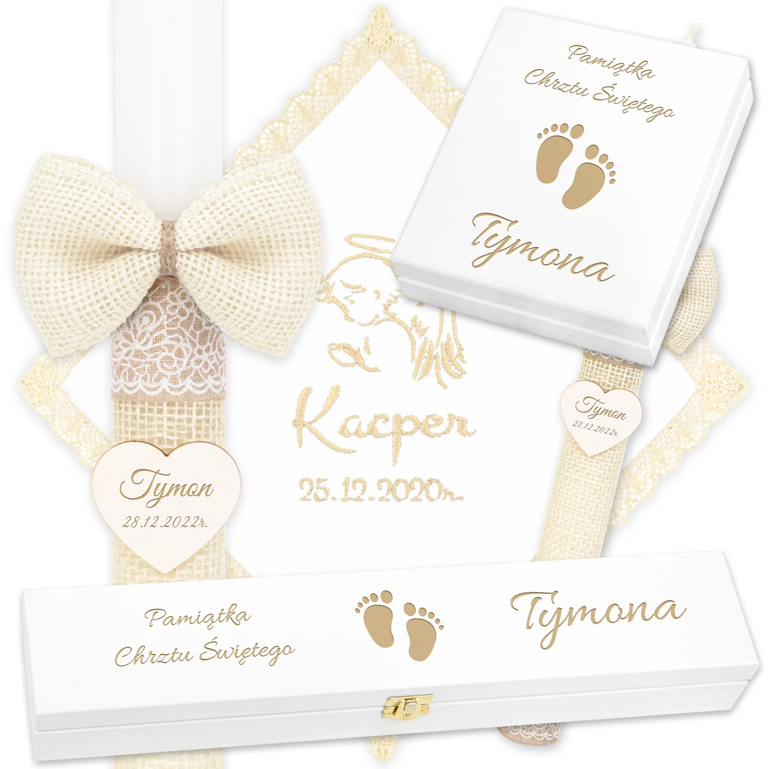 Świeca, Szatka i 2 Pudełka do Chrztu C4SH9P13/11SZ1