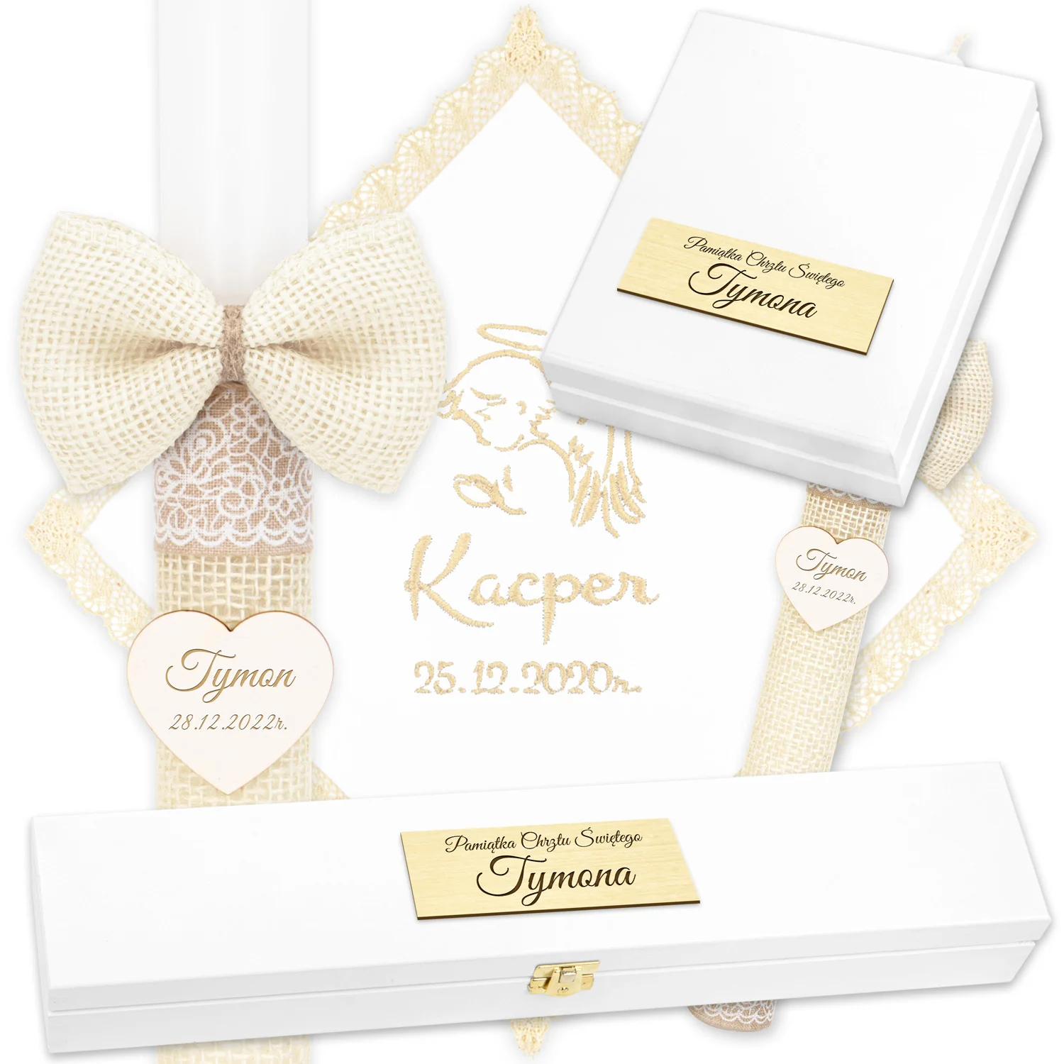 Świeca, Szatka i 2 Pudełka do Chrztu C4SH9P8SZ8