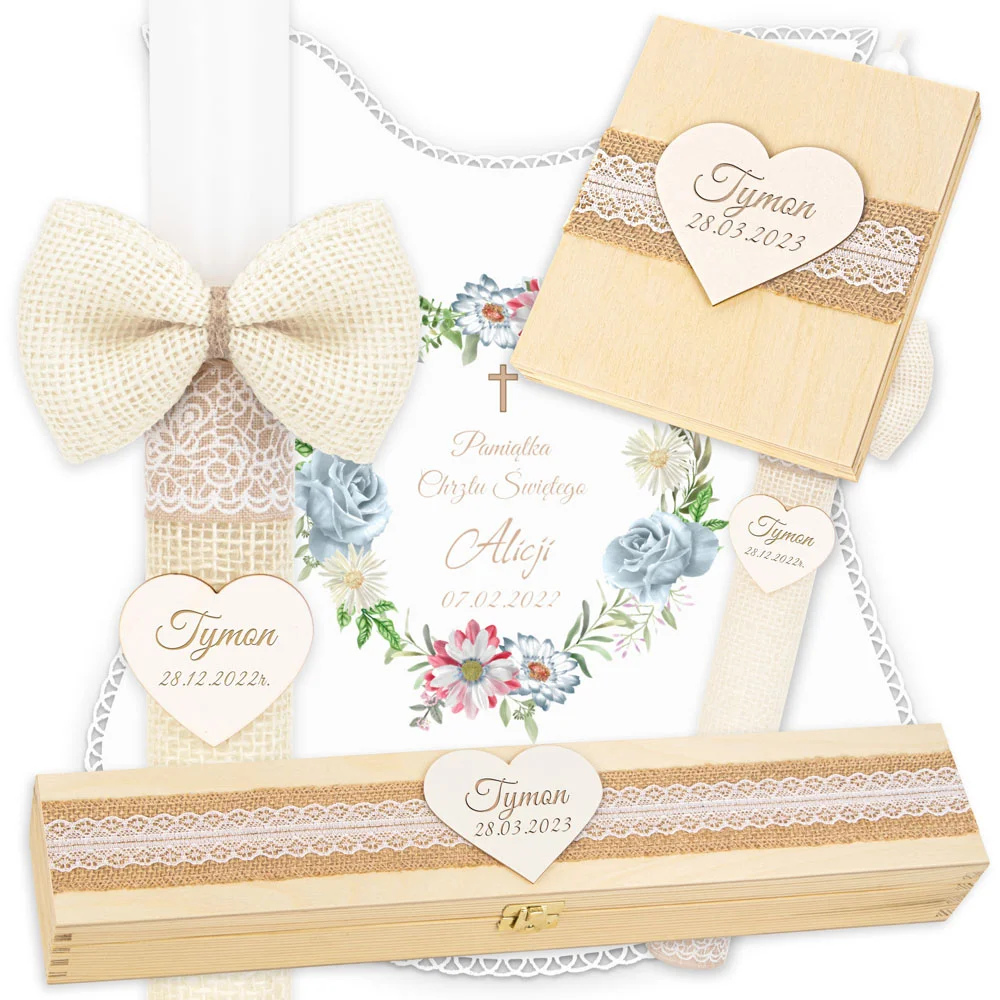 Świeca, Szatka i 2 Pudełka do Chrztu C4SS13P7SZ4