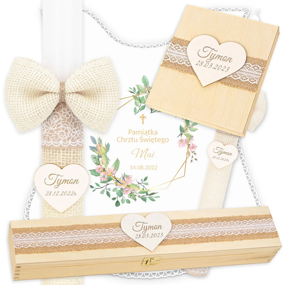 Świeca, Szatka i 2 Pudełka do Chrztu C4SS16P7SZ4