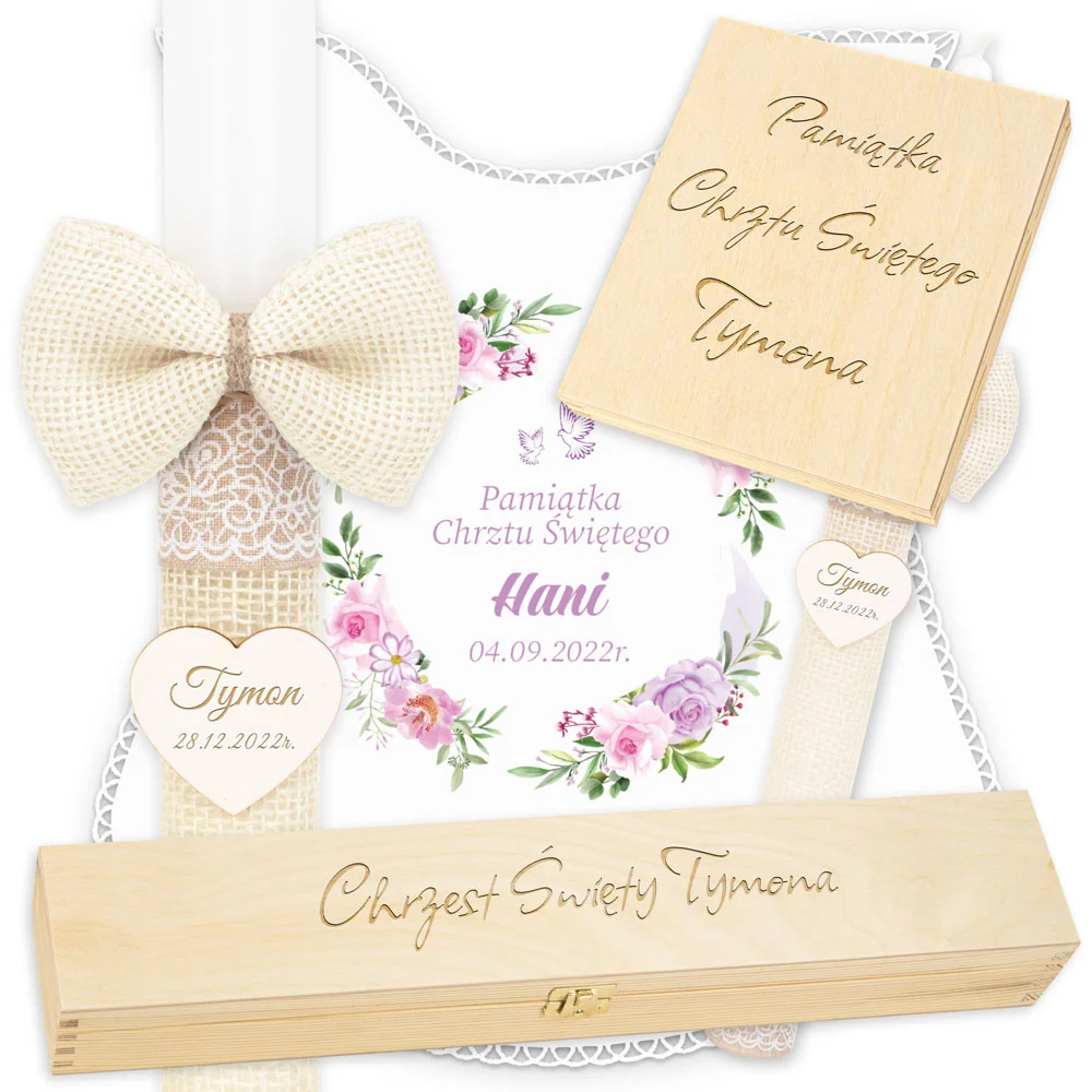 Świeca, Szatka i 2 Pudełka do Chrztu C4SS17P11/10SZ2