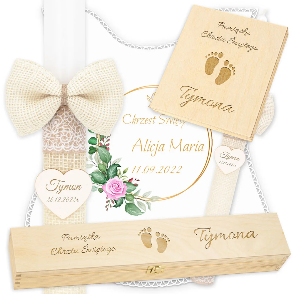 Świeca, Szatka i 2 Pudełka do Chrztu C4SS18P11/11SZ3