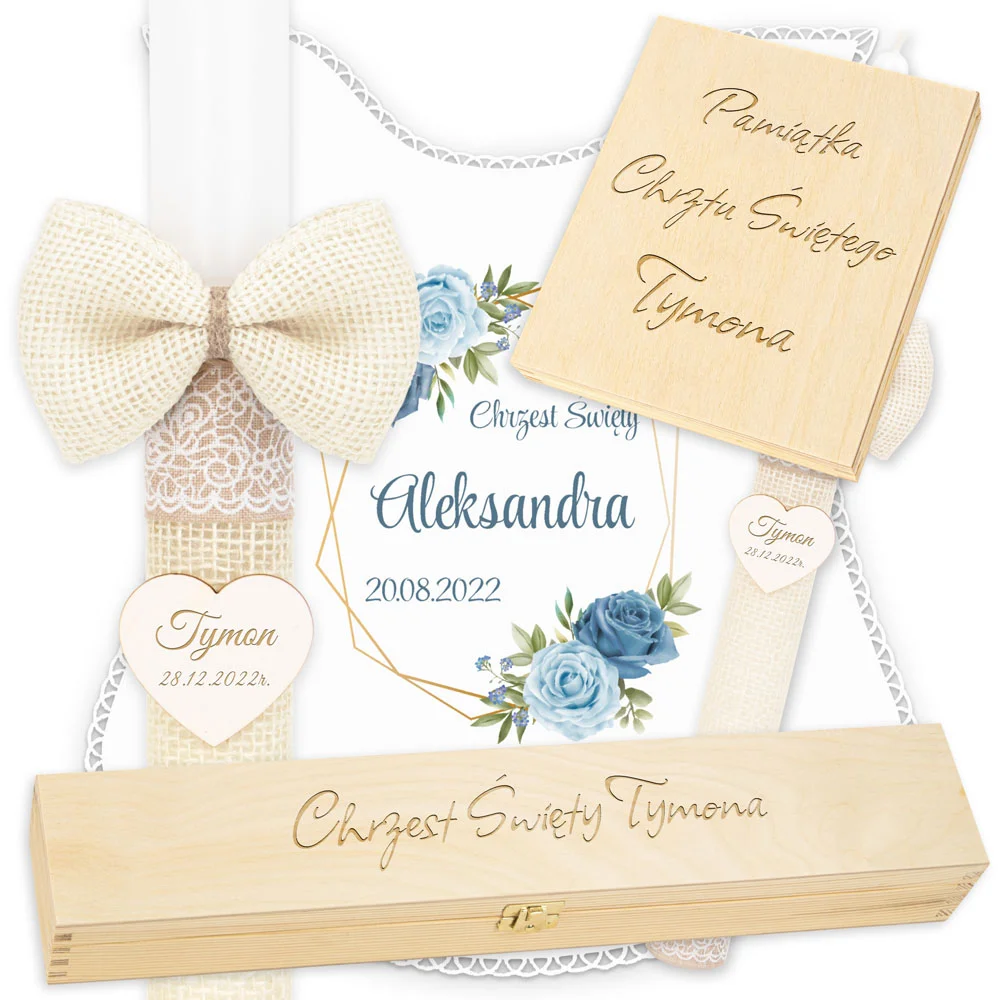 Świeca, Szatka i 2 Pudełka do Chrztu C4SS19P11/10SZ2