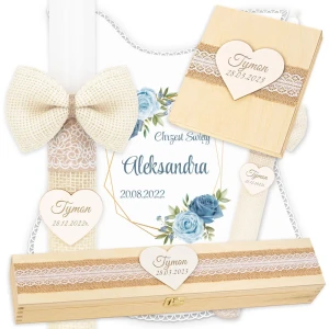 Świeca, Szatka i 2 Pudełka do Chrztu C4SS19P7SZ4