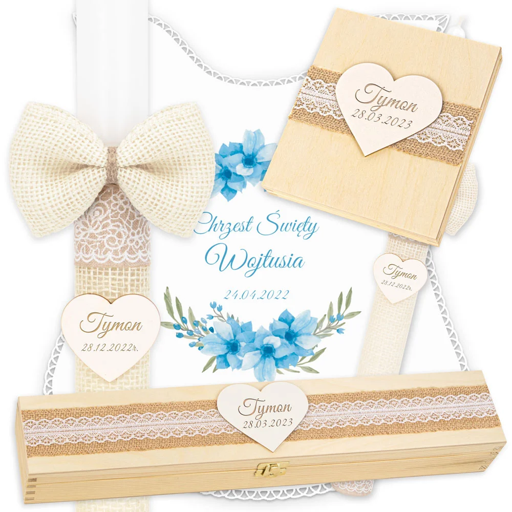 Świeca, Szatka i 2 Pudełka do Chrztu C4SS1P7SZ4
