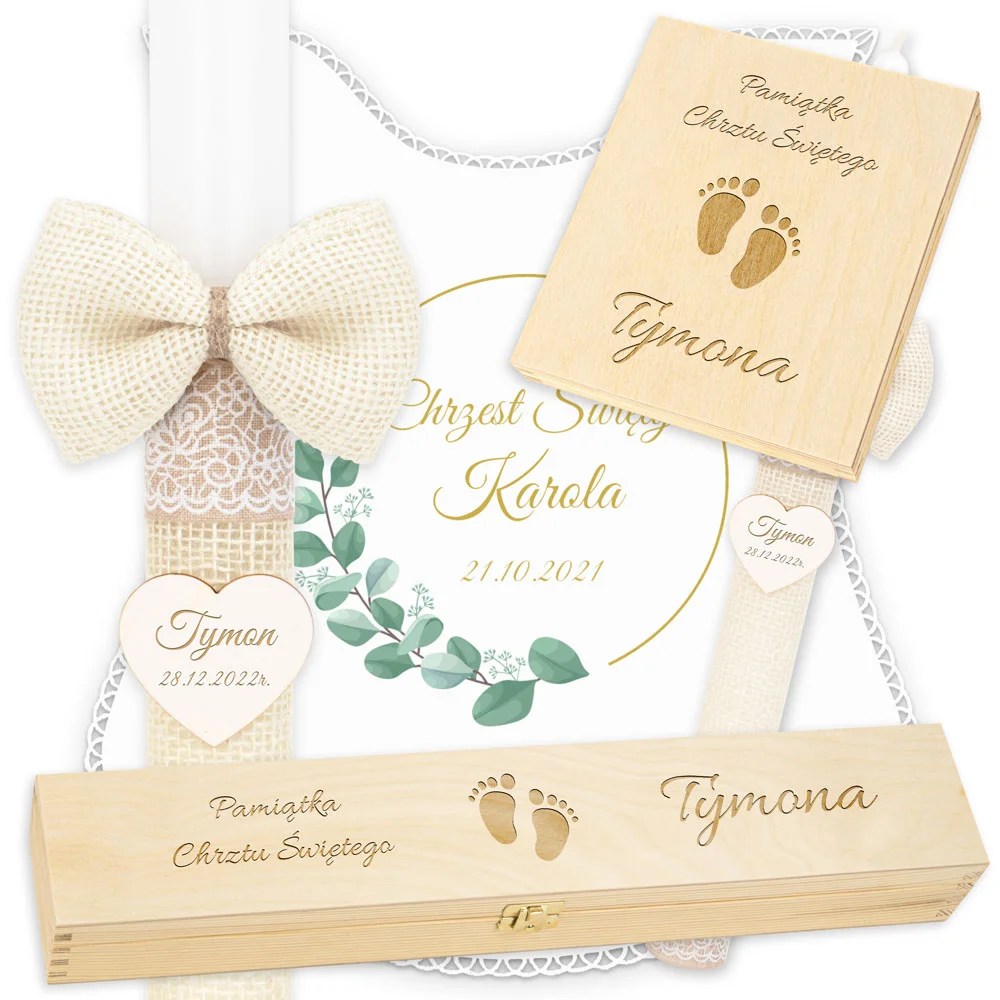 Świeca, Szatka i 2 Pudełka do Chrztu C4SS4P11/11SZ3