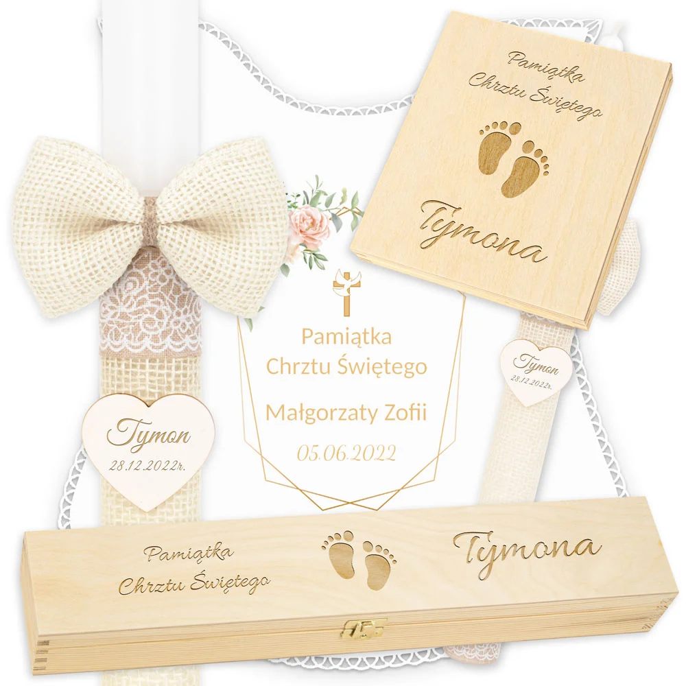 Świeca, Szatka i 2 Pudełka do Chrztu C4SS6P11/11SZ3