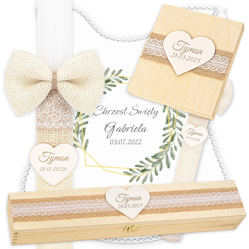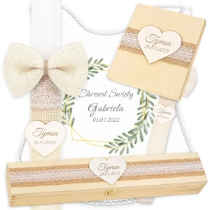 Świeca, Szatka i 2 Pudełka do Chrztu C4SS9P7SZ4