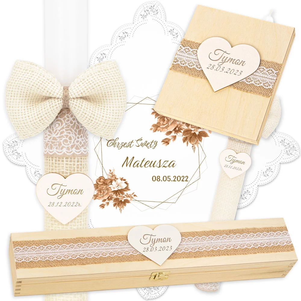 Świeca, Szatka i 2 Pudełka do Chrztu C4SW10P7SZ4