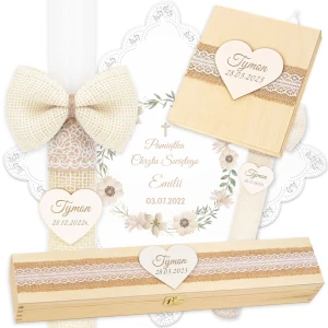 Świeca, Szatka i 2 Pudełka do Chrztu C4SW12P7SZ4