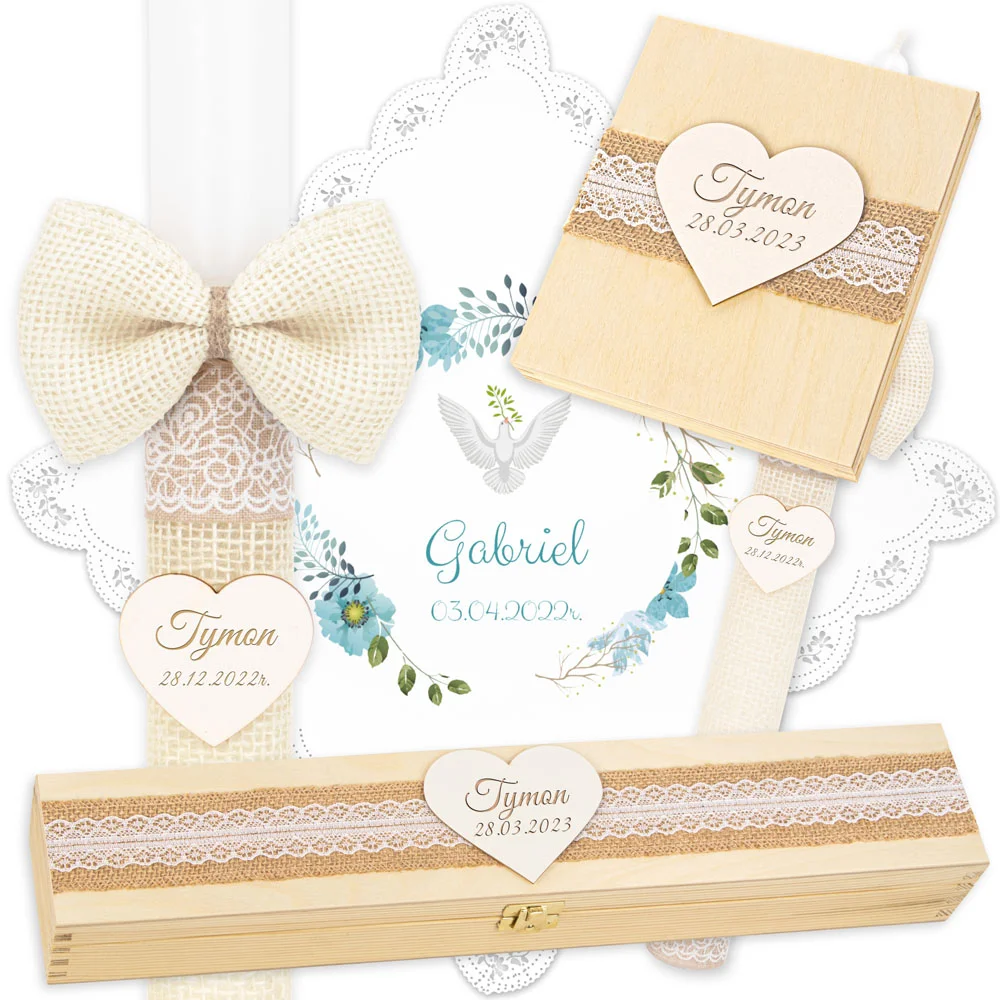 Świeca, Szatka i 2 Pudełka do Chrztu C4SW14P7SZ4