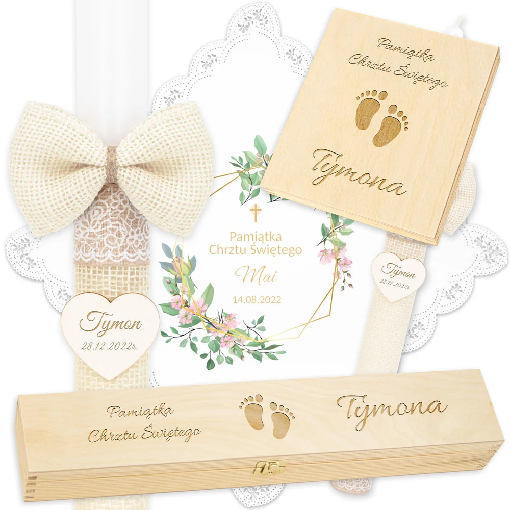 ✅ świeca na chrzest wraz z personalizacją (imieniem dziecka i datą chrztu),