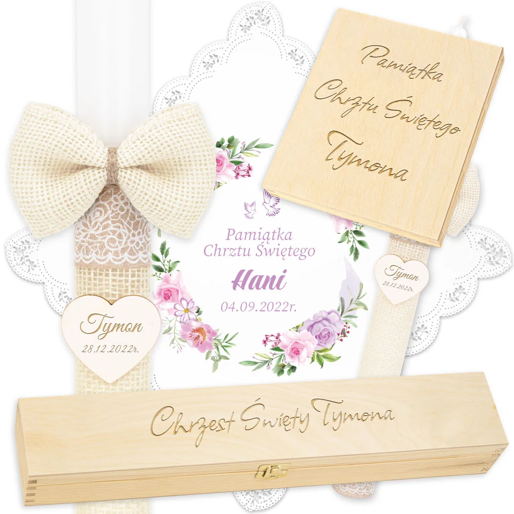 ✅ świeca na chrzest wraz z personalizacją (imieniem dziecka i datą chrztu),