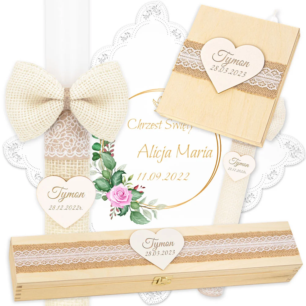Świeca, Szatka i 2 Pudełka do Chrztu C4SW18P7SZ4