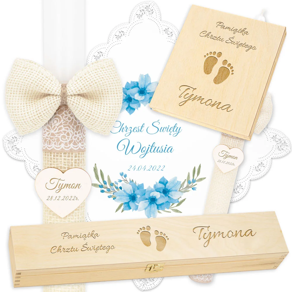 Świeca, Szatka i 2 Pudełka do Chrztu C4SW1P11/11SZ3